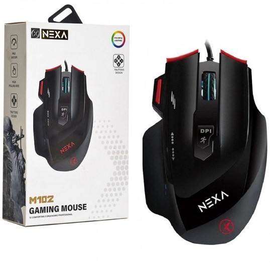 این موس از برند نکسا دارای 7عدد کلید می باشد و برای گیمینگ مناسب بوده علاوه بر این نوع اتصال آن سیمی می باشد.طول کابل این محصول 150 سانتی متر میباشد.پردازنده آن 603EP میباشد و همچنین حساسیت این موس ۱۲۰۰ DPI است. و میزان دقت این موس گیمینگ 3600-2400-1800-1200 DPI می باشد.